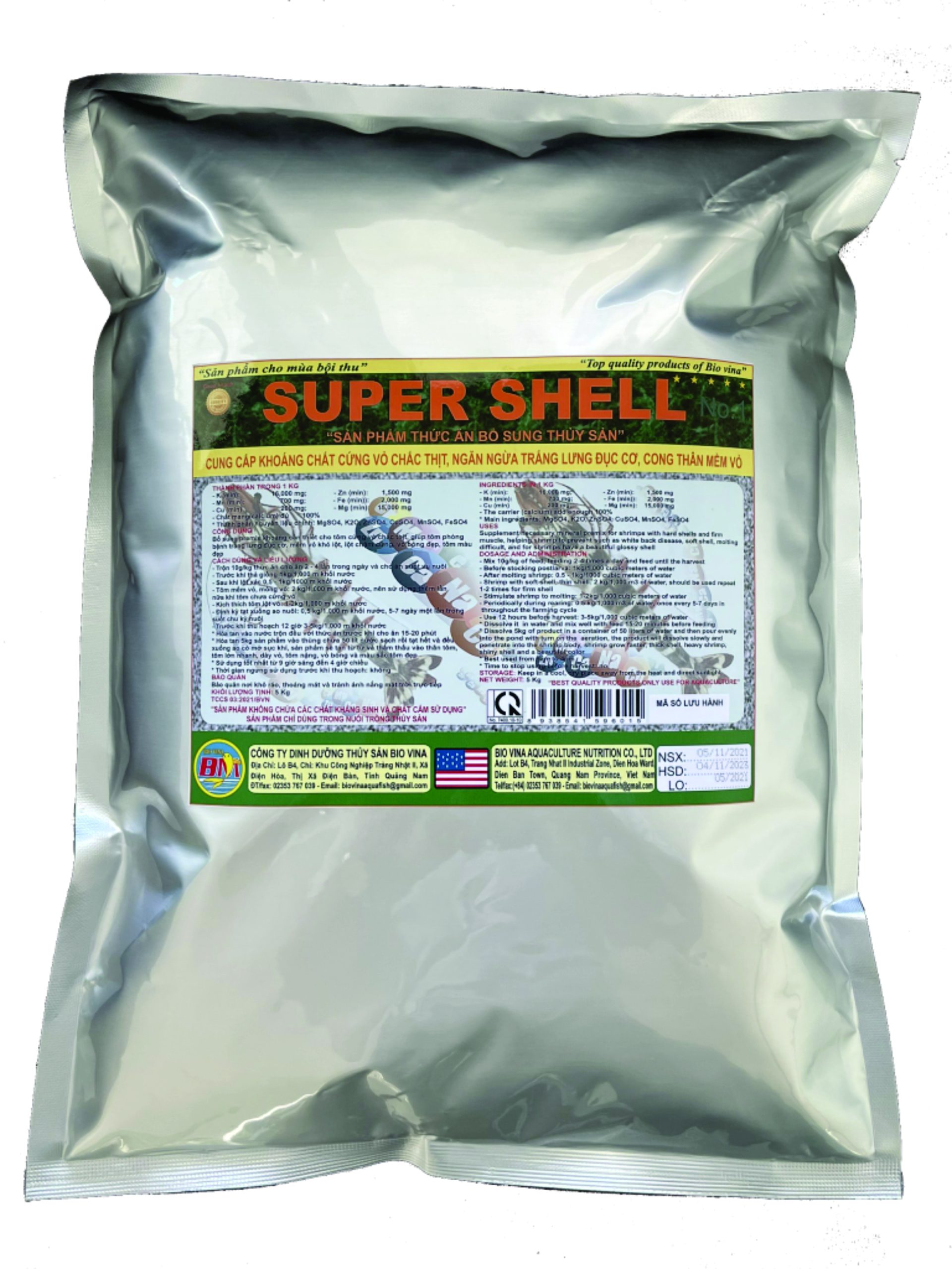 SUPER SHELL là sản phẩm chất lượng cao chứa hàm lượng tối ưu chất khoáng cần thiết và cân bằng cho nhu cầu thiết yếu của cơ thể tôm nuôi trong ao mật độ cao. SUPER SHELL cân bằng áp suất thẩm thấu giữa cơ thể tôm và môi trường nước ao nuôi. SUPER SHELL cho tôm khỏe mạnh đồng thời tăng cường hệ thống miễn dịch, chống lại bệnh chết sớm mà không hiểu nguyên nhân, tôm nhanh lột xác và nhanh cứng vỏ. SUPER SHELL sử dụng định kỳ và sử dụng khi tôm bị bệnh mềm vỏ, khó lột xác, chậm lớn màu sắc xấu, lột không cứng. SUPER SHELL sử dụng 12 giờ trước khi thu hoạch cho tôm chắc nịch và tăng trọng lượng thân.